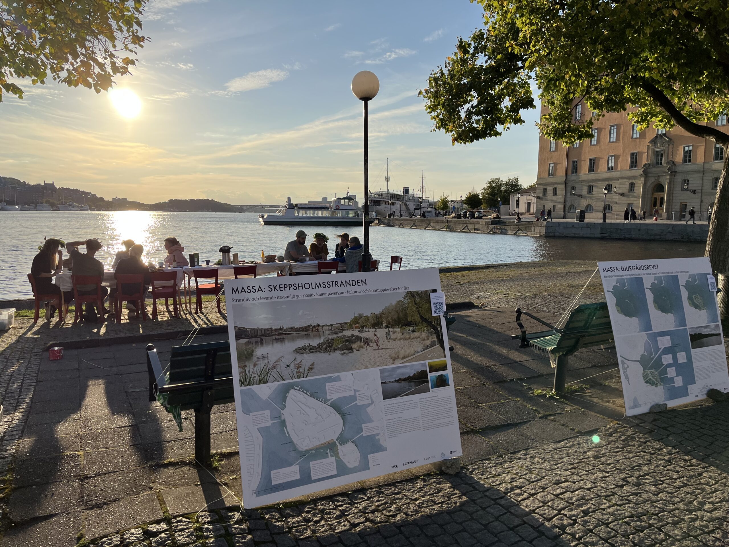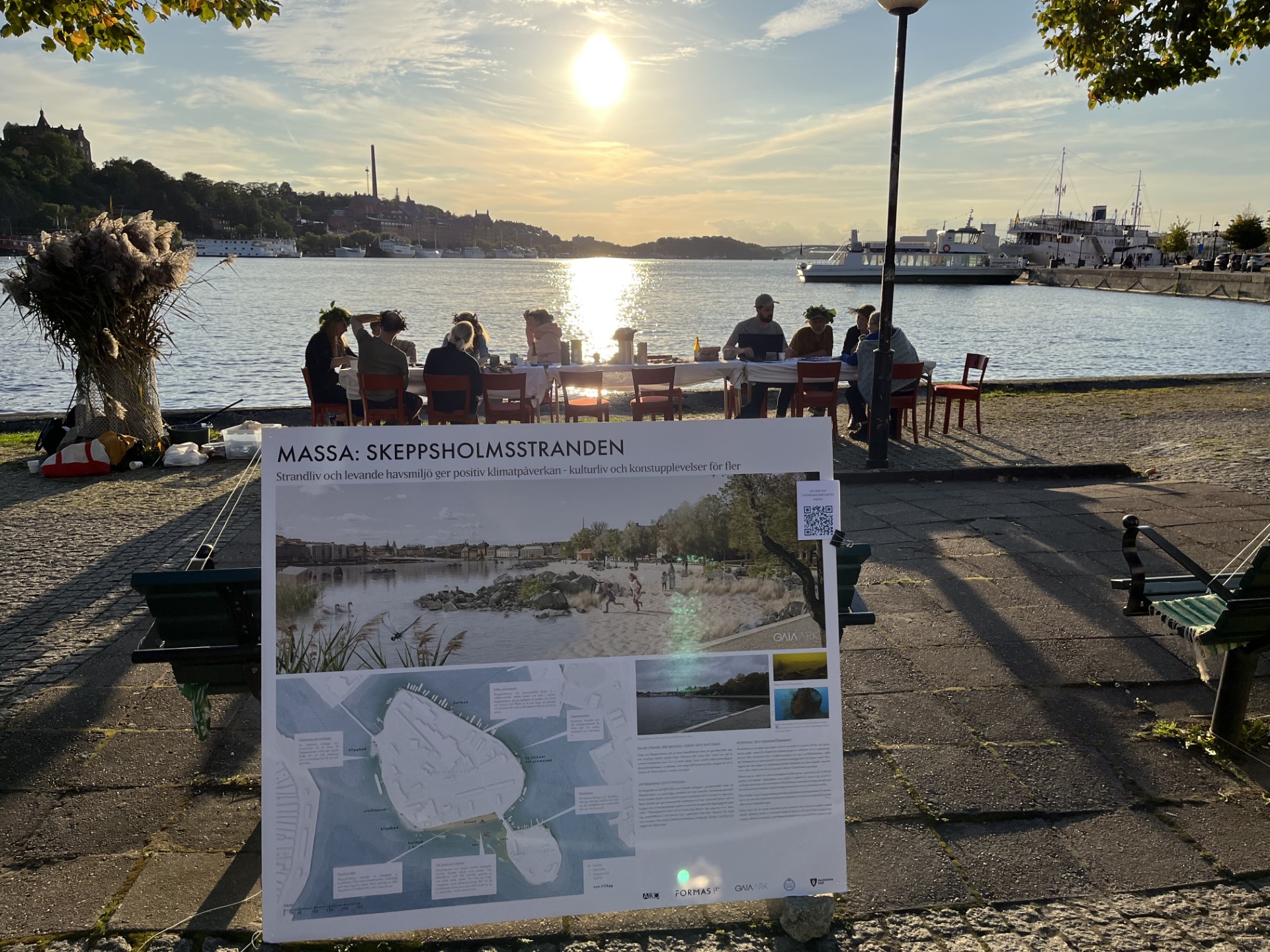 Forskningsprojektet MASSA anordnade under lördagen 16:e september ett event på Munkbrohamnen i Gamla stan. Eventet riktade sig till lokala aktörer och syftade till att undersöka platsens potential och hur den kan aktiveras och utvecklas. Utgångspunkten var att återvinna tunnelbanebyggets stenmassor för att skapa en ny levande parkmiljö i Gamla stan. Under eventet skissades gemensamt på förslag som var sprungna ur platsens konstnärliga kreativa aktörer. Vi undersökte även olika metoder för hur relationer kan etableras mellan människor och mellan människor och platsen.